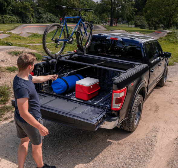 Turn your truck into a powerhouse of style and performance with the Roll-N-Lock M-Series XT Retractable Tonneau Cover! Built tough with aluminum slats wrapped in industrial-grade vinyl, this cover brings the sleek look of a soft cover and the unbeatable strength of a hard one. The low-profile canister keeps your bed looking clean while maximizing space, and the MaxTrak T-Slot rails let you mount racks, carriers, and adventure gear like a pro. No drilling, no hassle—just clamp it on and roll out! Lock down your cargo with confidence thanks to the secure, key-locking system. Proudly assembled in the USA and backed by a 3-year warranty, this cover doesn’t just protect your truck bed—it transforms it. Strong. Stylish. Ready for anything. The M-Series XT is your ticket to total truck domination!